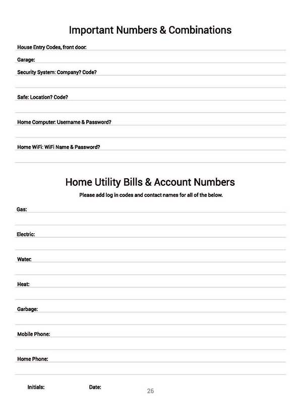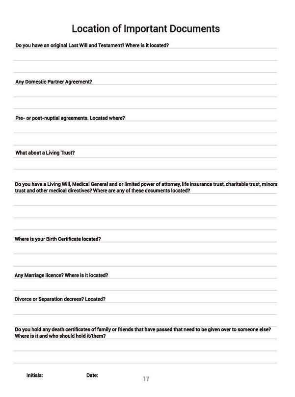 ✅Locations of important documents & keys v Financial accounts & insurance information