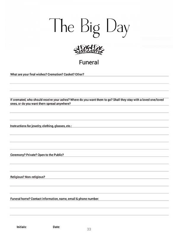 This workbook is for anyone who wants to organize their personal affairs so their loved ones aren't left with unanswered questions.