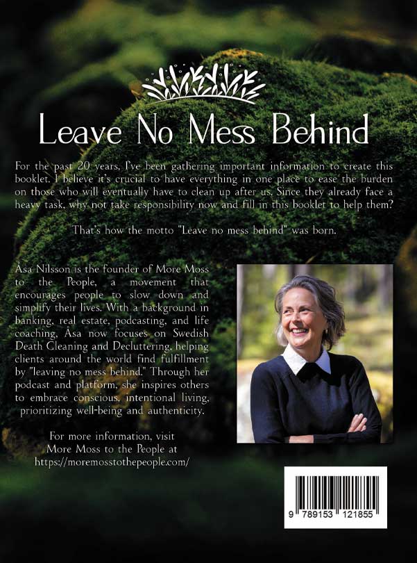 Our signature product, The Swedish Death Cleaning Workbook, offers a simple, all-in-one way to organize life's most important details — from bank accounts and passwords to personal wishes and keepsakes. It saves time, reduces stress, and brings lasting peace of mind knowing everything is clearly documented and easy to find.